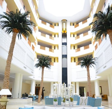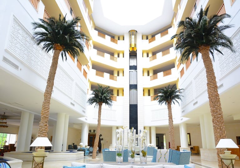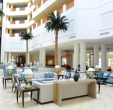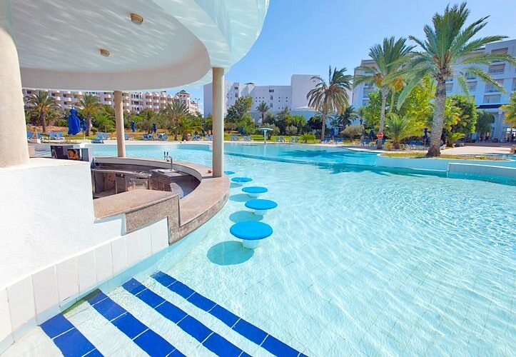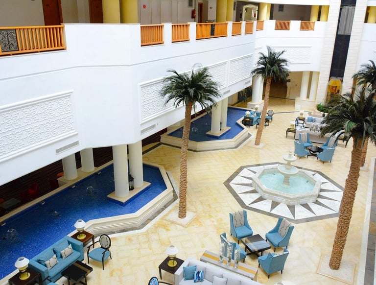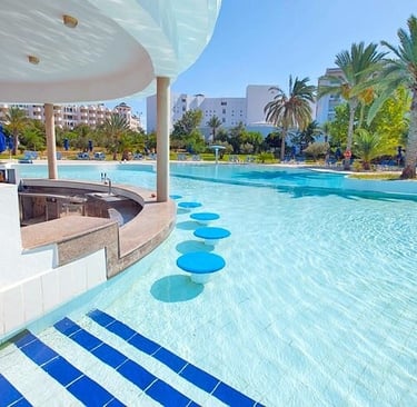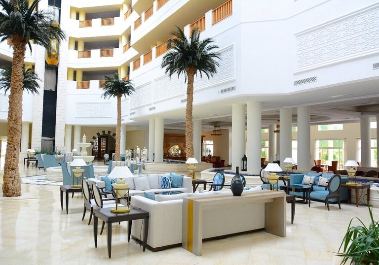 The Vincci Saphir Palace & Spa is a modern 5-star hotel located in the heart of Yasmine Hammamet, just steps from the beach and close to top restaurants and attractions. The hotel features 236 elegant rooms and suites, a private beach, indoor and outdoor pools, a fitness center, spa, and several dining options. Guests enjoy free Wi-Fi, excellent service, and a relaxing atmosphere making it an ideal setting for conferences, business events, and leisure stays.